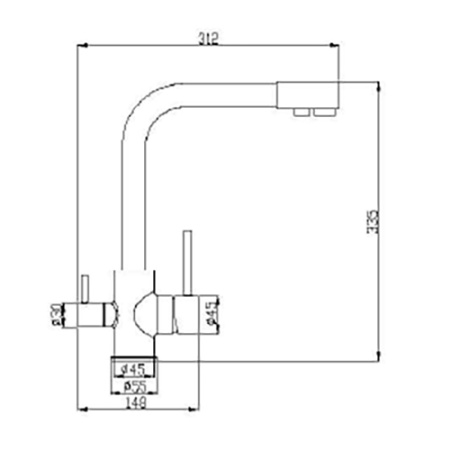 Baterie cu 3 cai CHROM pentru apa filtrata, calda/rece