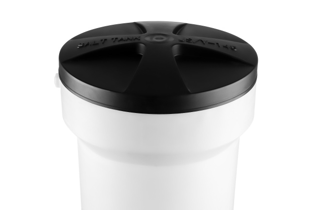 Rezervoarele pentru soluții de regenerare (sare, permanganat de potasiu) sunt realizate din polietilenă.